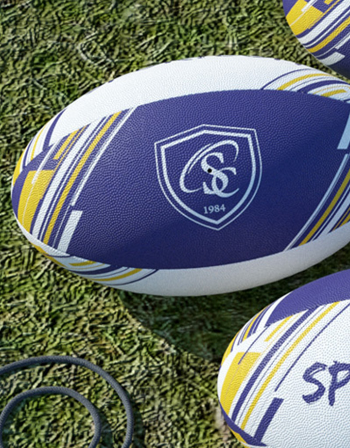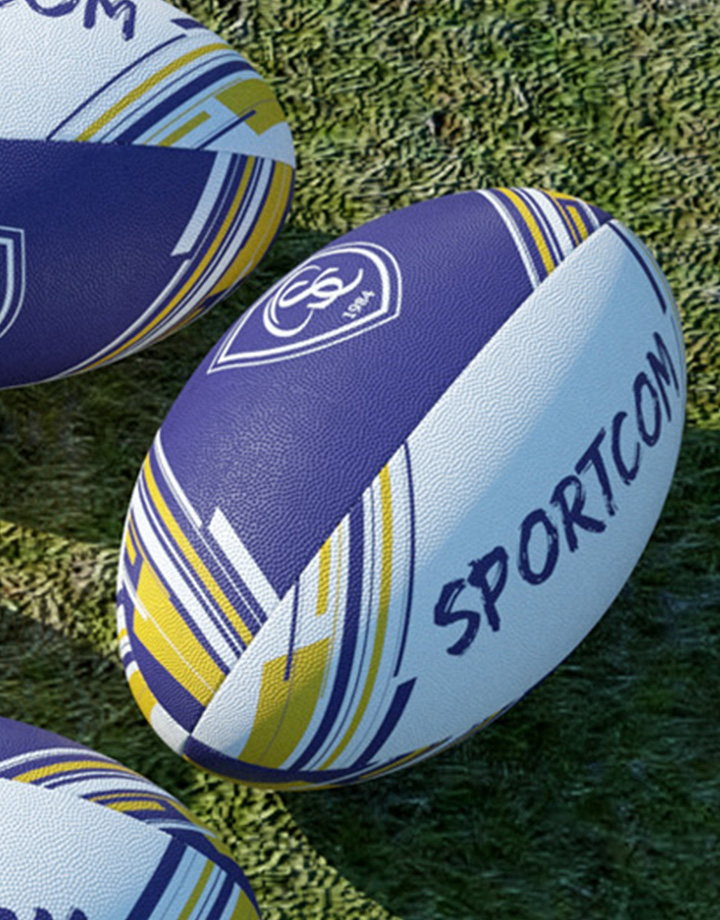 Mini ballon de rugby 100% personnalisé en caoutchouc vulcanisé à picots. Poids : 150g. Longueur gonflé : 18cm. Vessie en latex synthétique. Cousu machine 4 panneaux. Personnalisation intégrale sur l’ensemble du ballon en sérigraphie (6 couleurs maximum). Ballon livré non gonflé d’office. Ballon livré sous polybag individuel. Aiguille en option. Minimum de commande : 100 pcs